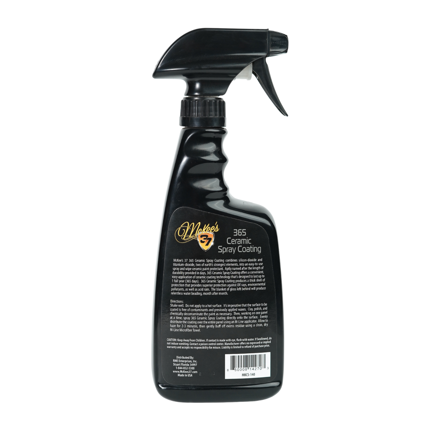 McKee's 37 365 Ceramic Spray Coating combines silicon-dioxide and titanium-dioxide, two of earth's strongest elements, into an easy-to-use spray and wipe ceramic paint protectant. Aptly named after the length of durability provided in days, 365 Ceramic Spray Coating offers a convenient, easy application of ceramic coating technology that's designed to last up to 1 full year (365 days). 365 Ceramic Spray Coating produces a thick shell of protection that provides superior protection against UV rays, environmental pollutants, as well as acid rain. The blanket of gloss left behind will produce relentless water beading, month after month.