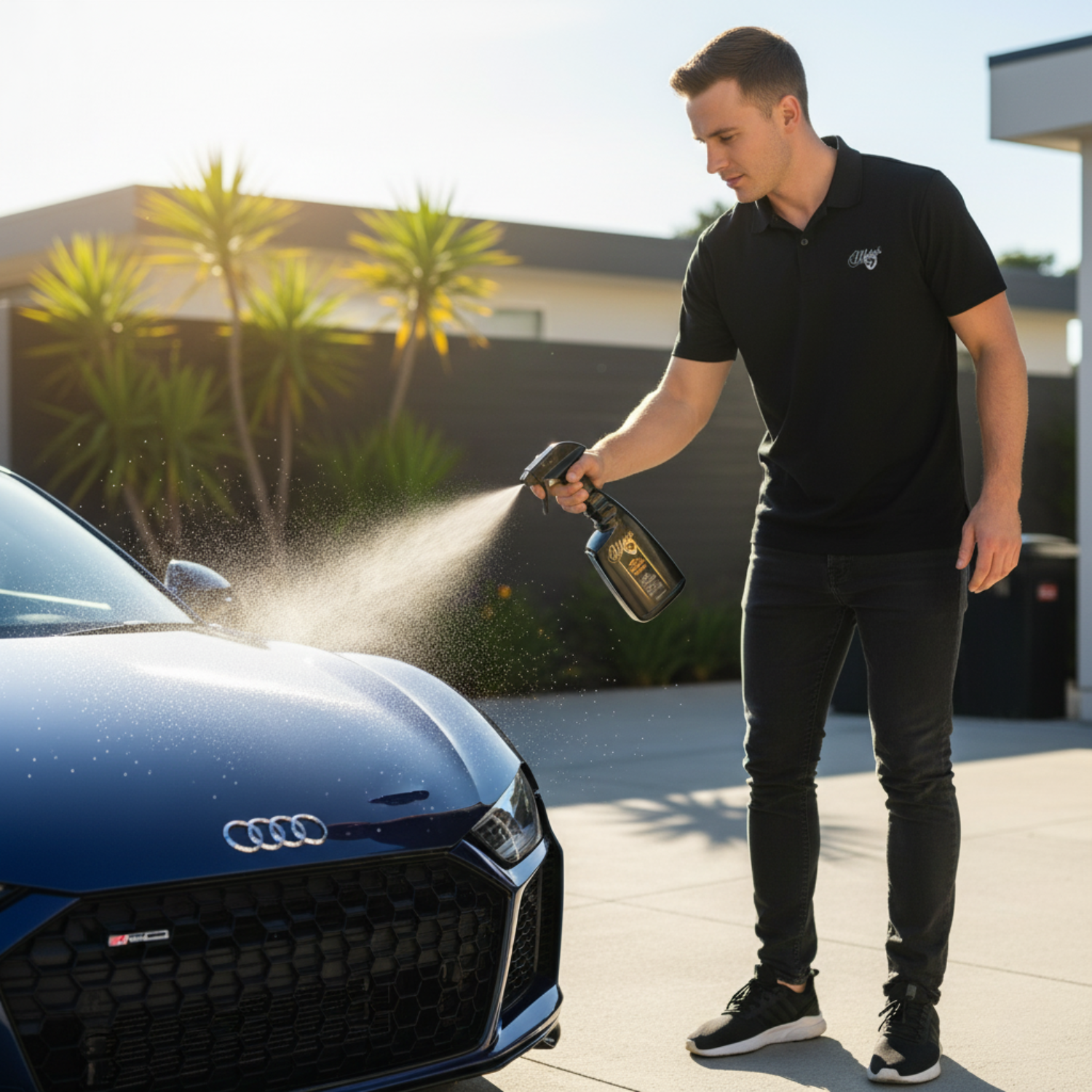 Shake well. Do not apply to a hot surface. It's imperative that the surface to be coated is free of contaminants and previously applied waxes. Clay, polish, and chemically decontaminate the paint as necessary. Then, working on one panel at a time, spray 365 Ceramic Spray Coating directly onto the surface. Evenly distribute the coating over the entire panel using an M-Line applicator. Allow to haze for 2-3 minutes, then gently buff off excess residue using a clean, dry M-Line Microfiber Towel.